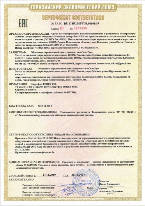 Аппарат имет сертификацию для работы во взрывоопасных атмосферах на территории евразийского и европейских (ATEX) союзов (см.в документах). Поэтому это лучшее решение для использования на северных предприятиях нефтегазовой отрасли. Torex проделал большую работу, чтобы заказчики с высокими требованиями остались довольны. В России Ex-Gad.ru является официальным представителем Torex, поэтому возможны доработки и поставка любого количества аппаратов. Например, можем сделать версию без камер и GPS.